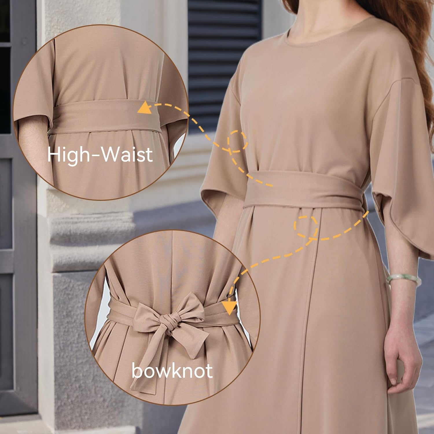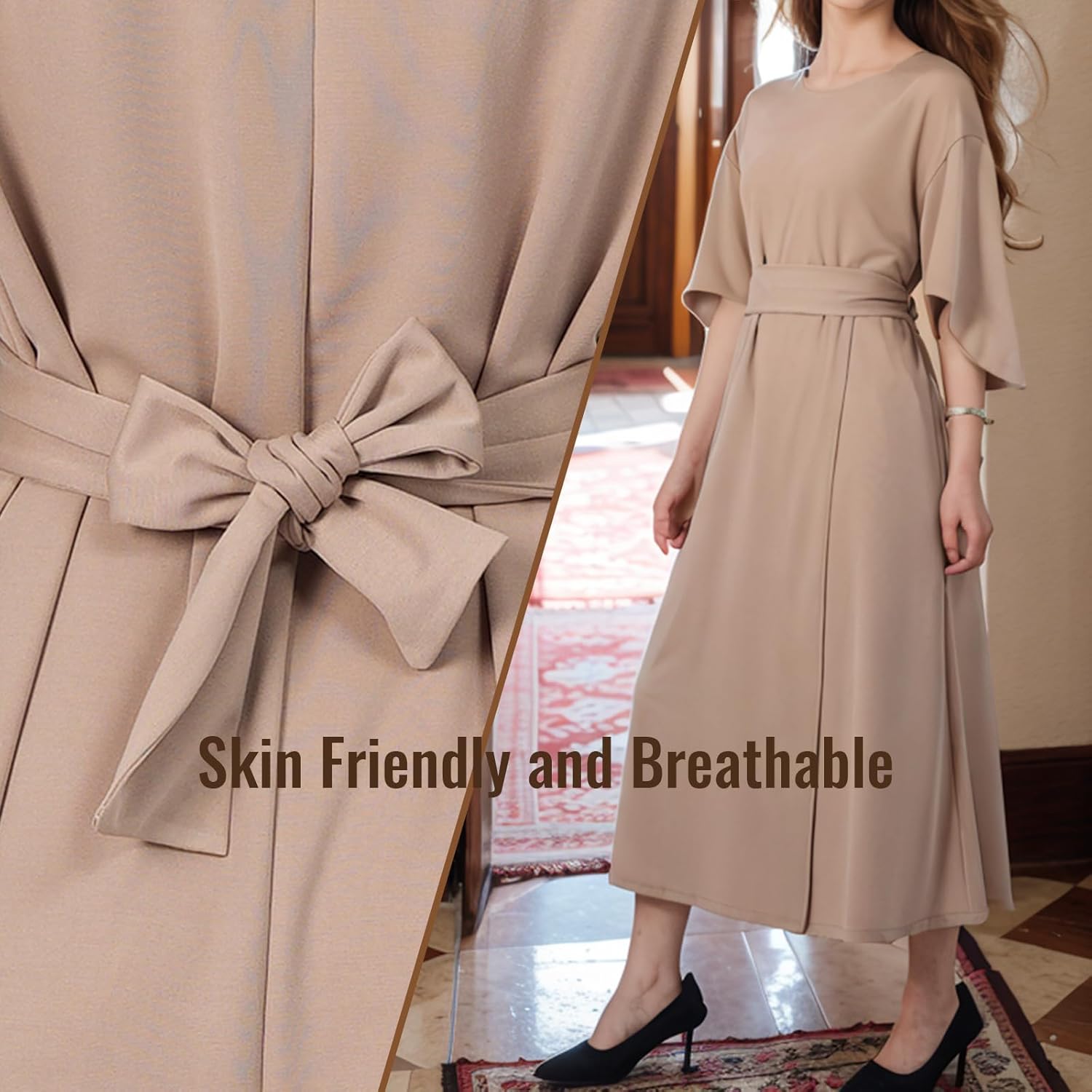 The design of this dress is rooted in the concept of minimalist luxury. The dress features a round – neckline that exudes simplicity yet grace. The bat – wing sleeves add a touch of drama and flair, creating a silhouette that is both unique and flattering. The wide sleeves not only make a bold fashion statement but also provide a sense of freedom and movement, allowing you to glide through your day with ease.